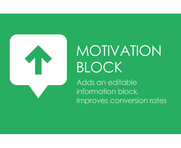 Модуль призван увеличить показатели конверсии карточки товара за счет размещения специального блока с контентом, который создаст мотивы пользователю сделать покупку (проверено на более чем 1000 магазинов, эффект увеличения конверсии гарантирован).