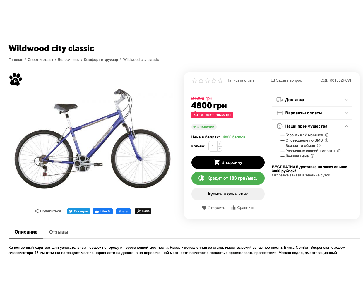 Одна кнопка Купить в кредит на странице товара при нескольких способах оплаты в кредит