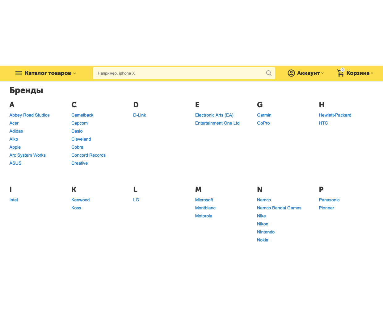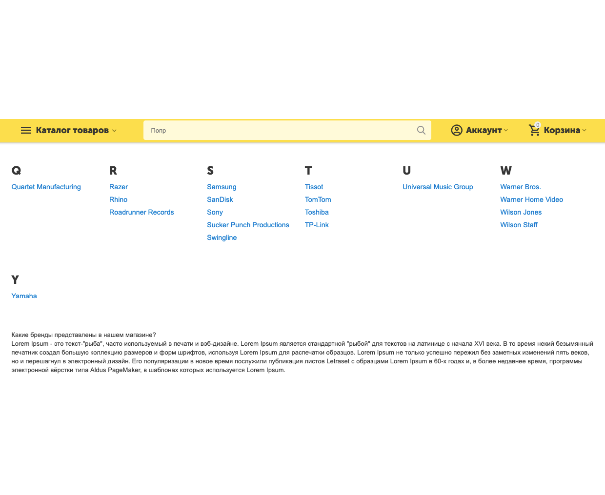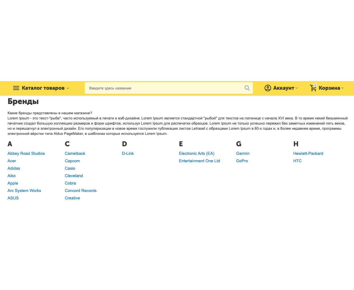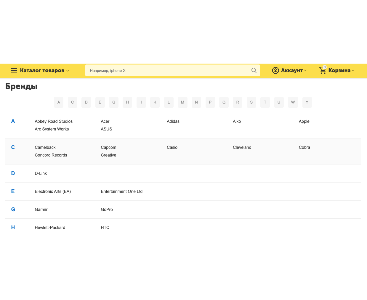 • Сетка с алфавитным списком (стандартный для CS-Cart вид отображения)