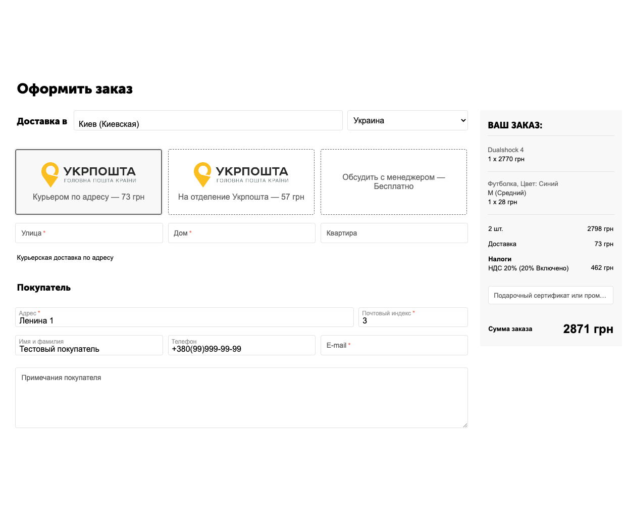 Модуль позволяет получить по нажатию кнопки почтовые отделения Укрпошты (для доставки в отделения) и улицы населенных пунктов Украины для адресной доставки.