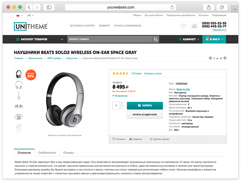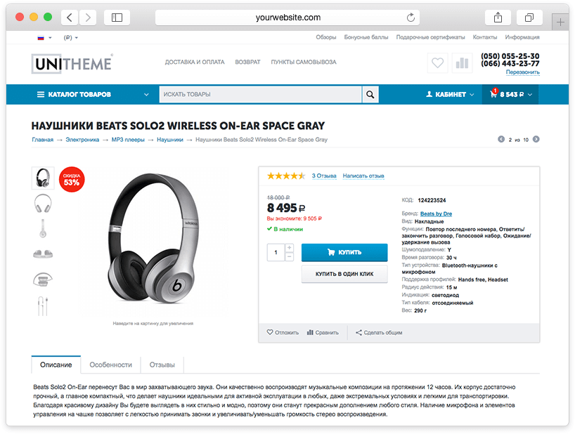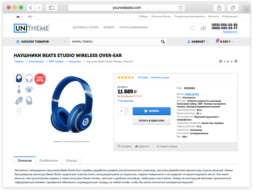 Шаблон UniTheme для CS-Cart разработан с целью сделать качественный и практичный продукт, с превосходным внешним видом, простой в использовании владельцем интернет - магазина и максимально дружественный для его посетителей. Никаких отпугивающих эффектов, всплывашек, мишуры - только сбалансированный визуал и практичный функционал, построенный на опыте лидеров рынка электронной коммерции. UniTheme - это возможность получить магазин премиум качества за минимальный бюджет и в самые сжатые сроки.