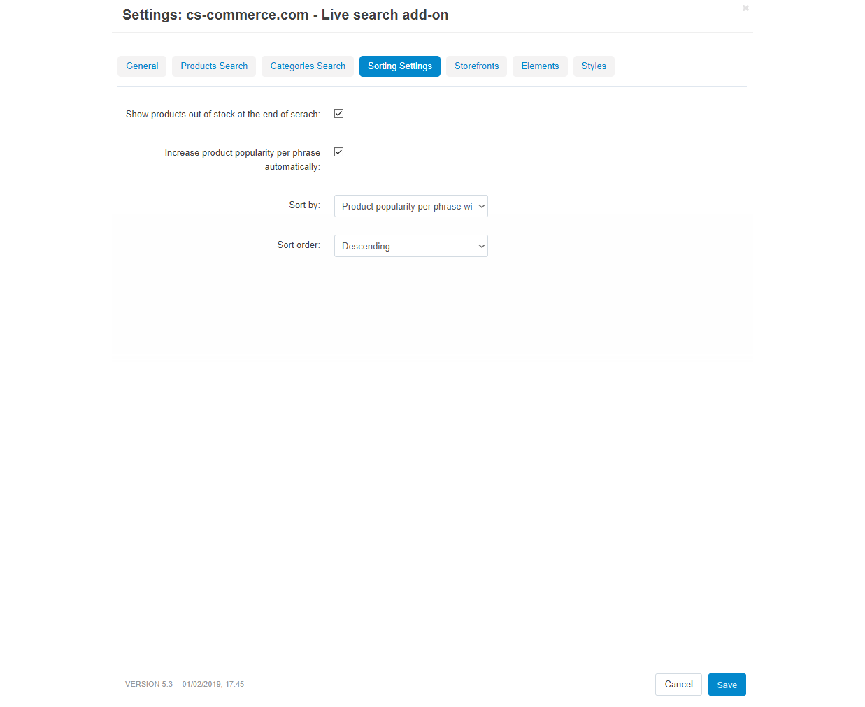 Настройка сортировки товаров в поисковой выдаче