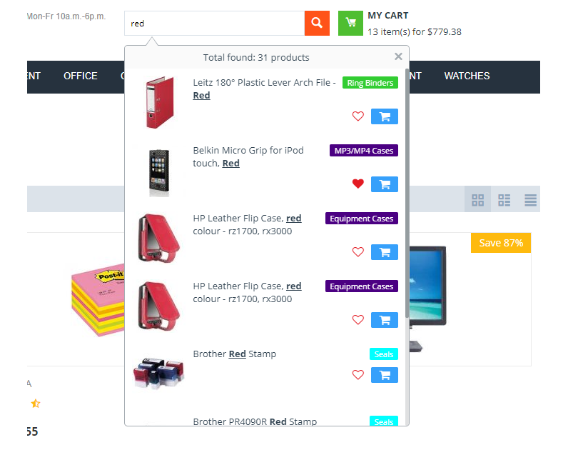 - поиск в опциях товара.